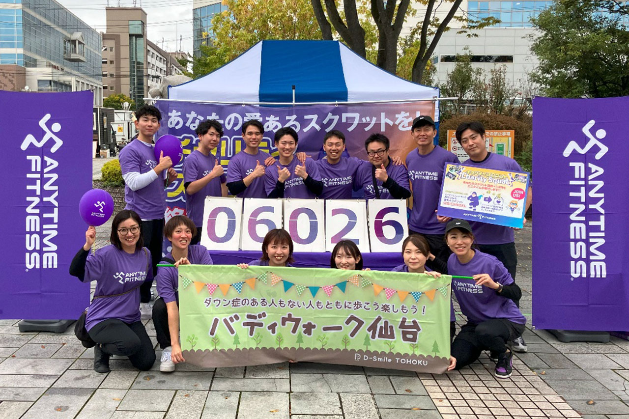 ブースでは、来場者さまが30秒間で行ったスクワット回数×10円を寄付する「チャリティスクワット」を実施しました。多くの方にご参加いただき、合計6,026回のスクワットが集まりました!これにより、バディウォーク仙台を運営する「バディウォーク仙台実行委員会(D-Smile TOHOKU内)」へ60,260円を寄付いたします。