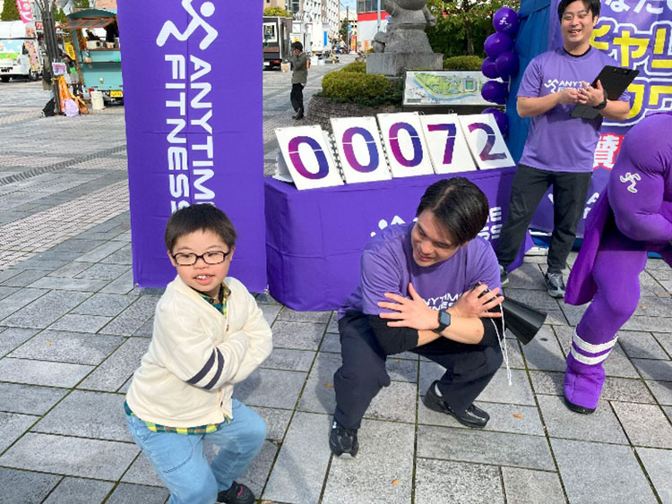ブースには株式会社ウォーターネットさまご協力のもと、ブースには無料給水スポット(ウォーターサーバー)を設置。マイボトルをご持参の方々に自由にご利用いただきました。また、障がいの有無を問わず、みんなでウォーキングを行う「バディウォーク」にスタッフも全員参加しました。ウォーク前のステージにはエニタイムフィットネス公式キャラクター「ランニングマン・ウーマン」が登場!会場の皆さまと一緒に「みんなでスクワット」を実施し、ウォーク前の会場の一体感を高め、その後もみんなで一緒にウォーキングを楽しみました!