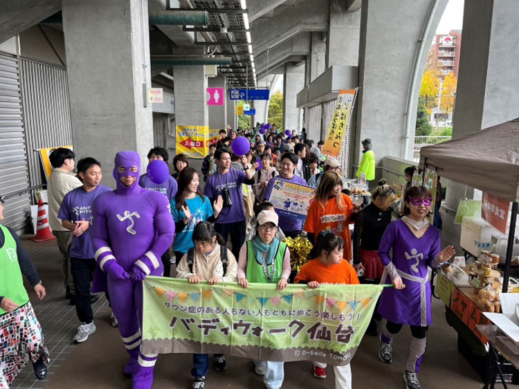 「バディウォーク仙台」は、ダウン症のある人たちとそのご家族、友人、そして地域のみなさんが一緒に楽しく歩く、笑顔あふれるチャリティウォークイベントです。イベントの名前にある「バディ(buddy)」とは、「仲間」や「相棒」を意味する言葉です。ダウン症のある人が一方的に支えられるだけでなく、彼らもまた、私たちの社会を豊かにしてくれる大切な「バディ」であり、お互いに支え合い、共に歩む。そんな温かい関係を築くことが、このイベントの願いです。